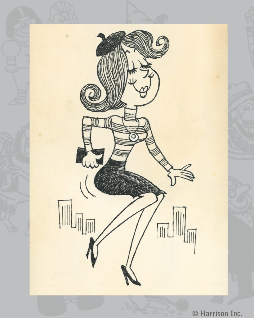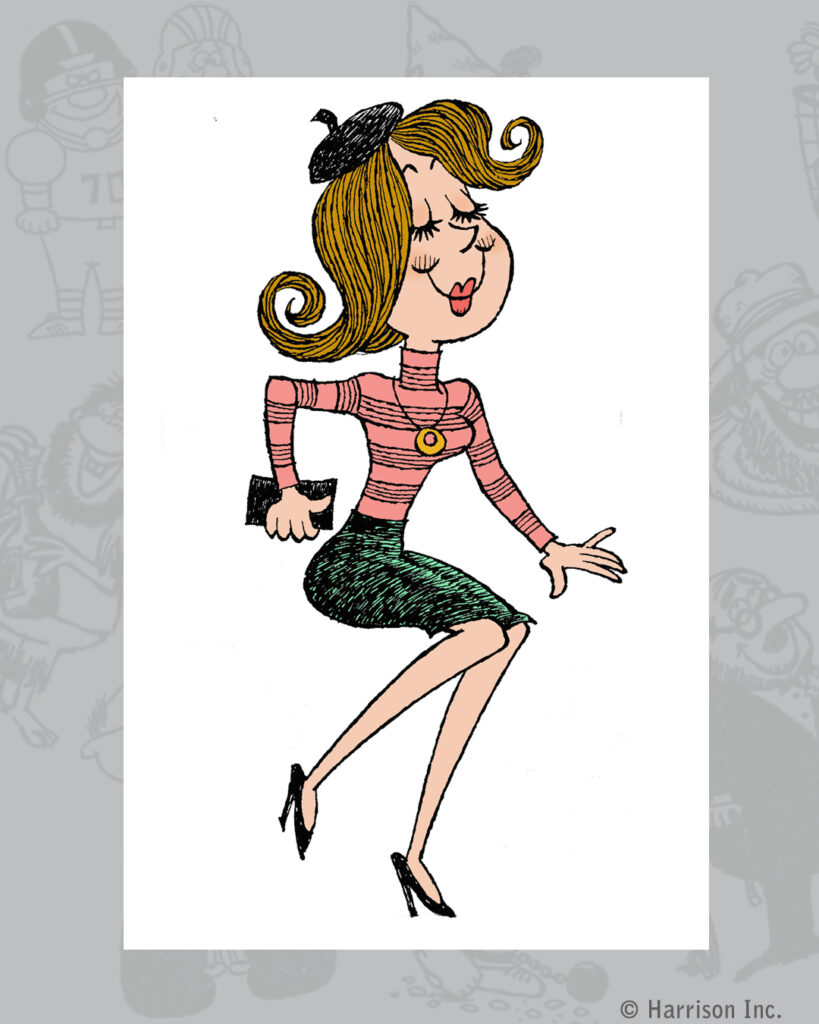 This stylish gal was drawn and inked in the 1960’s. First I digitally cleaned and colored the original drawing. Then with some standard animation steps plus generative AI video techniques she was brought to life doing “The Palm Spring Stroll” for a social media post promoting Jean & James, a vintage boutique in Palm Springs.