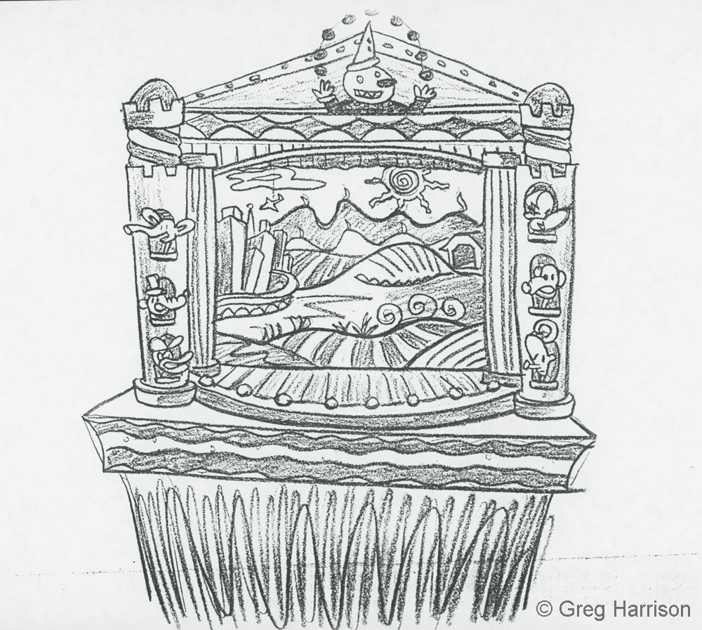 After too many cups of coffee I designed this nutty puppet stage for a Purdue Chicken Nuggets commercial starring a puppet of the chicken king, Frank Purdue himself.